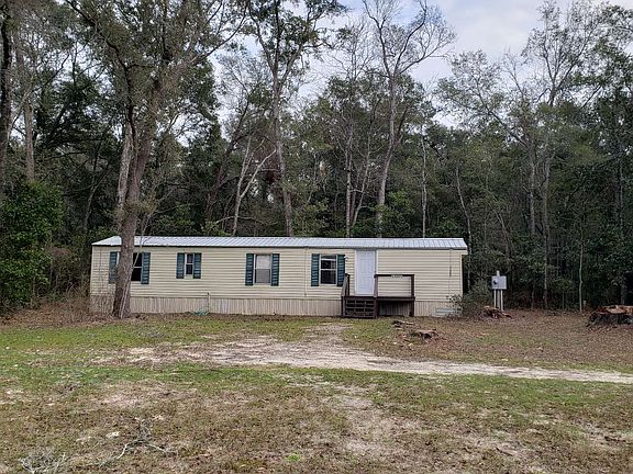 Neat and Tidy getaway home located 8 miles from Suwannee River, Many springs and only 50 miles to the gulf. Home is move in ready with newer air, flooring, skirting, metal roof. Land has multiple uses even though a portion is a utilities easment. Previous boundary Survey included