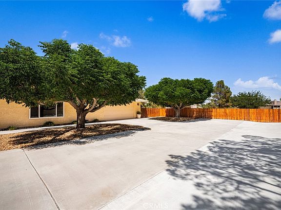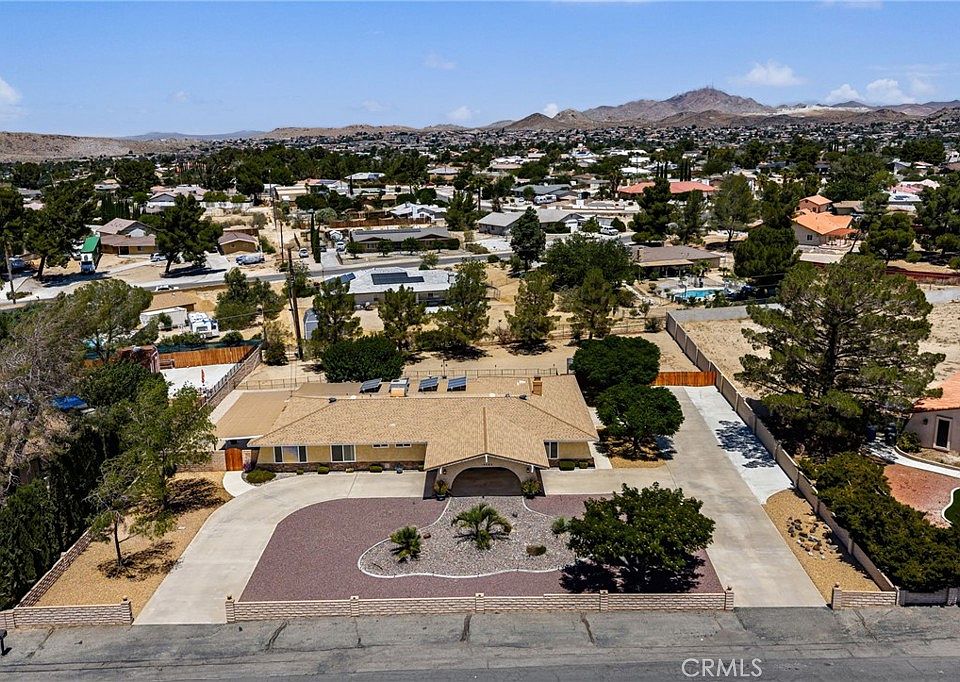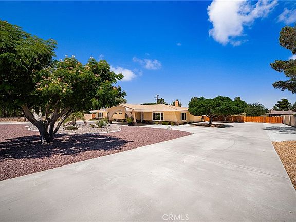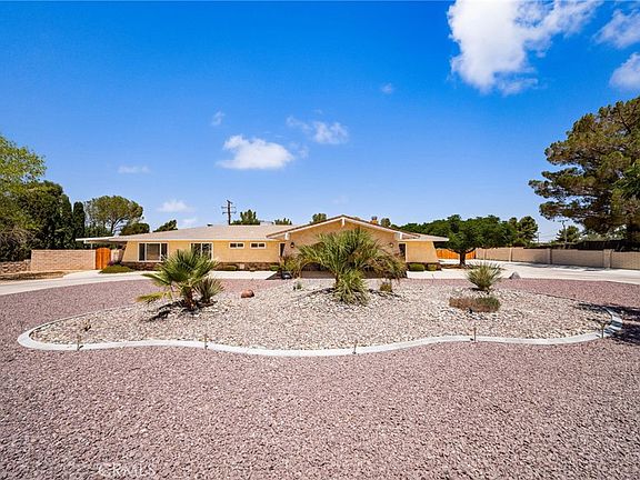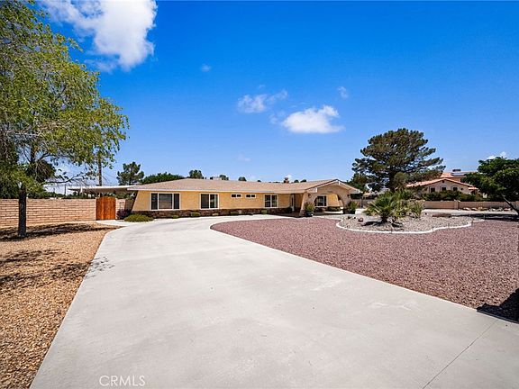 Hidden Gem in the heart of the Desert Knolls area of Apple Valley. As soon as you lay your eyes on it, you’ll immediately recognize the true “Pride-Of-Ownership.” Here are just a few of its many other fine features: Its drought-tolerant plant beds, Block wall, and complementary paint scheme enhance its eye-catching curb appeal. As your enter through the Porte-Cochere and past the custom front door with ornate glass, your are introduced to a flowing 2,256 square foot open floor plan that is “Turnkey” with striking architectural accents, fresh interior paint, recessed lighting, and a complementary blend of wide Ceramic tile, New Luxury Vinyl, and plush carpet flooring throughout. The updated kitchen invites you to cook your favorite meals with its sleek built-in stainless steel appliances, Dual ovens, Granite countertops with tile backsplash and large center island with seating for 2 at the breakfast bar. The abundance of Custom Cherry wood cabinetry and counter space ensures the kitchen is both functional and beautiful. From the kitchen, the recessed lighting gently lights the dining room, and the adjoining family room. You’ll find it easy to serve and entertain your guests simultaneously while creating the perfect ambiance. Designed for easy living and entertaining, This home features a spacious living room, a cozy gas and wood-burning fireplace framed by a stylish rock hearth. A laundry room with plenty of counter and cabinet space and direct access outside. A total of 3 bedrooms. Each bedroom has its own bathroom. The huge grand suite is bathed in natural light from a multitude of windows with additional space for an office, seating area, or possible 4th bedroom. A generous sized mirrored closet plus a sumptuously appointed private bathroom with dual sink, mirrored vanity, tiled stand-up shower, and commode. A total of 3 remodeled bathrooms; The Solar, energy efficient dual pane windows and lighted ceiling fans throughout will help keep your utility bills low and the interior very quiet and comfortable year round. Step outside into your private backyard oasis with an oversized wraparound covered patio with ceiling fans, low maintenance landscaping, turf, brand new tuff shed, privacy fencing, and plenty of parking in the oversized circular driveway, the 2-car garage, RV parking, and or off street parking. All on a giant 29,000 sqft lot. A great location minutes to the local Golf course, Mojave Narrows regional and civic center park, shopping, and dining.