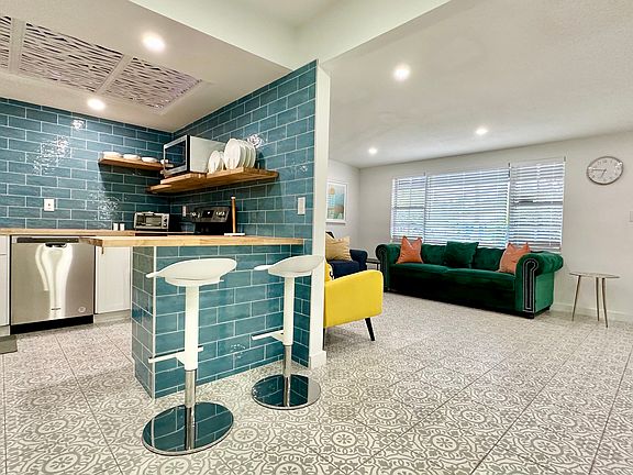 Freshly renovated entirely, with carport and a separate 2 car garage. Spacious back yard, and lanai. Fully furnished.