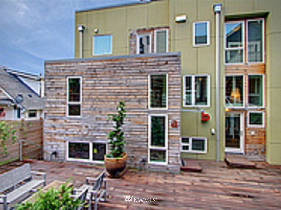 Desirable Queen Anne location. Features large roof top deck with westerly views of Puget Sound and Olympics. Bright rooms with floor to ceiling windows and SW exposure. Clean lines, well-appointed kitchen and baths with walnut cabinets. Conserve water and save on bills with leading edge rainwater catchment design and living green roof. True townhome in sophisticated eco-built complex was labor of love by respected architect G-Projects. Walk to bistros, parks, shops. No HOA dues.