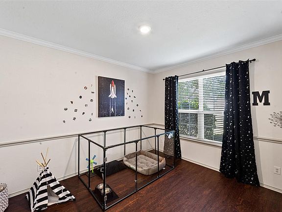 BACK ON MARKET. Buyer financing fell through the day before closing. This home has great curb appeal and is in a fantastic location near Firewheel Town Center and Lake Ray Hubbard. Easy access to George Bush Turnpike and HWY 78. Backing up to a wooded area allows you to relax in the peace and quiet. Luxury vinyl plank flooring is found in the formal dining and living room areas. Kitchen and living areas are open format making it easy to entertain. The refreshed kitchen features subway tile back splash, stylish gray cabinets and granite counters. Upstairs there is a flex room that can be used as a play room or game room. Roof replaced in 2018. Ring doorbell and back camera.