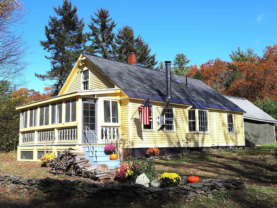 This charming Vermont country farmhouse offers peaceful privacy at the end of a quiet town road. Recently updated with quality materials and meticulous attention to detail, the home blends classic warmth with modern comfort. The open-concept main floor features a beautifully appointed kitchen ideal for family meals, flowing into the dining area and a cozy living room with a bay window and woodstove for chilly days. Off the living room, a screened porch invites you to enjoy your morning coffee, outdoor meals, or a good book surrounded by nature. A practical mudroom provides space for coats and shoes, while the main-floor bedroom can also serve as an office or study, with a full bath conveniently across the hall. Gleaming hardwood floors and freshly painted rooms complete the first level. Upstairs, a charming nook with a daybed offers a perfect reading or nap spot. The primary bedroom features softwood floors and a large window that fills the space with morning light. A second bedroom shares a split bath—one side with a vanity and toilet, the other with a shower room. Adjacent to the house, a versatile barn/garage provides room for projects or storage. A sunny deck between the house and barn is ideal for grilling and outdoor dining. The six-acre property features open fields perfect for gardens or livestock, offering classic Vermont country living at its finest.