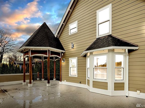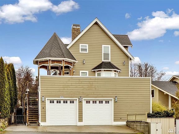Walk to town from this fantastic Fairhaven location! Home built in 2007 but has historic charm with 9' & 10' ceilings, custom moldings, and fir and travertine flooring. Three master suites and a fourth potential main floor master or use as home office or den. Ground floor has 500 sq ft mil or guest suite with living room, kitchen, laundry and master. Home has private feel & views of the Chuckanut Mts. Wonderful large rooftop deck is over an oversized two car garage with potential shop space.