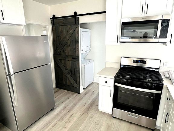 Modern Kitchen Stainless steel appliances, quartz countertops, and ample cabinet space