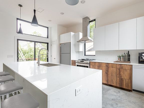 Every REX home comes with a 30-day buyback guarantee. Terms and conditions apply. Schedule your appointment with REX for a same day showing. Newly constructed, incredibly designed 3 bedroom, 2.5 bath home with 1929 square feet, just minutes from downtown Austin! Split-level open layout, with great design and sustainable materials throughout. The living room features stunning sealed concrete floors, large ceiling fan/light, oversized windows, and high ceilings. A gorgeous, modern kitchen opens to the living room and includes a large center island with marble veined quartz counters, sealed concrete floors, tile backsplash, high-end stainless steel appliances, pendant lighting, gas stove, wine fridge, and designer cabinetry in both white and natural wood. The bedrooms are generously sized and the master offers renewable stranded eucalyptus hardwood floors, a spacious closet with natural light, huge windows, vaulted ceilings, and a cedar balcony with iron railing. The en suite master bath has an incredible soaking tub and step-in shower, custom tile, dual vanities with marble veined quartz counters, and linen closet. The upstairs balcony overlooks mature trees. Landscaping and courtyard coming soon! Just minutes from downtown restaurants, bars and UT. Energy Star 3.0 Home Performance (including solar ready; HVAC with 2 zones; Nest thermostats); home automation and security including CAT 6 cabling and fiber ready. Two outdoor storage closets. Flex space would be perfect for a home office or media area. A rare opportunity and will go fast! Schedule a showing with REX today!