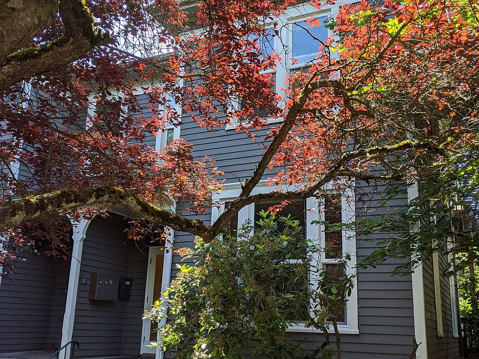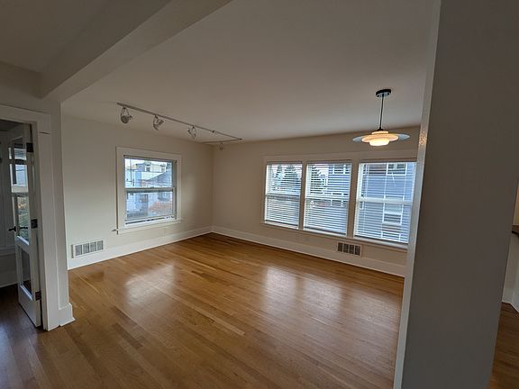 Bright spacious 1500sf two-story 2-bed 1.5-bath apartment with hard wood floors, great light, chef's kitchen and tiled bathrooms, in-unit washer/dryer, private deck with neighborhood view and mountain glimpses. Quiet green street just blocks from Trader Joe's, Madison Market, Safeway, Kaiser Permanente, Microsoft Connector, city bus lines. Driveway parking available. Non- smoking building.