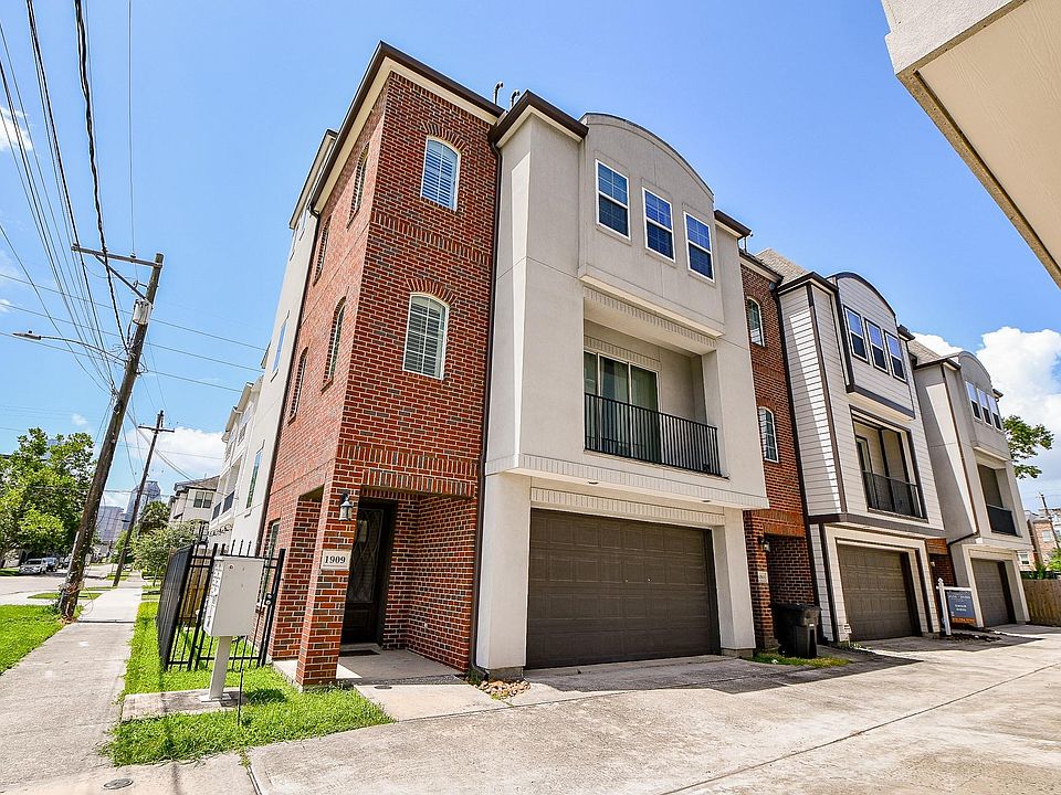 This sophisticated urban living 3-bedroom, 3.1-bathroom home near Downtown Houston. This well-maintained home has UPGRADES throughout the house such as plantation shutters, high ceilings, stained hardwood floors, & open living spaces with direct access to the balcony & dining area with butlers pantry. The modern kitchen features a gas cooktop, over-sized kitchen island perfect for entertaining, modern appliances, abundance of cabinets & storage! Fridge, Washer & Dryer included! The primary suite includes a spacious walk-in closet & a luxurious ensuite bath with dual sinks, a soaking tub, and a glass-enclosed shower. Secondary bedrooms both with generous closets & private full baths. The rooftop slated terrace is the perfect place to entertain with gas connection grill, relax & enjoy the sunrise/sunset. This home is situated in a highly desirable location, renowned dining, shopping, walking distance to jogging/bike trail, various fitness gyms, breweries & bars. Schedule a showing today!