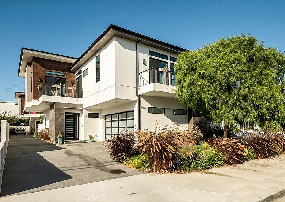 Want BETTER than new? Here it is - a luxurious, air conditioned 2018 Townhome, boasting high ceilings, that opens into a large living room with wet bar featuring a mini wine cooler, and a modern linear fireplace. The open feel extends to the upgraded gourmet kitchen with quartz countertops, center island, and walk-in pantry.. The chef's gas range is an upgraded, self-cleaning Thermador, while the refrigerator is an upgraded, top-of-the-line Samsung, eagerly anticipating the many meals you'll be preparing here. A designer-inspired powder room is also on the first floor. Custom iron railings lead you to the spacious upstairs den area with balcony access. All four bedrooms are upstairs, including the fabulous primary bedroom suite, with walk-in closet, which features vaulted ceilings, gas fireplace, walk-in closet, private balcony access and a decadent primary bath with freestanding tub and separate oversized shower. In addition to the guest suite, which has it's own bath, there are two other bedrooms that share a contemporary bath and a large balcony. For your convenience, the laundry room is also upstairs. Like to entertain outdoors? The lighted, professionally landscaped, and private backyard is complete with a concrete patio that provides you with a sunny spot to relax or grill something for dinner - an inviting place to end the day or week. Unique custom features include Airphone video entry monitor, pre wiring for speakers, a custom security alarm, central vacuum, and two car garage pre-wired for your EV. This townhome is located in a truly wonderful neighborhood where you can walk to Starbucks, play with the kids in one of three parks within two blocks, live close to the beach, dog park, and award-winning Birney Elementary. PLUS, Huntington Lane is a one-way street, so you have tons of street parking in addition to the garage and driveway. This is how North Redondo Beach life should be - contemporary living at its best!