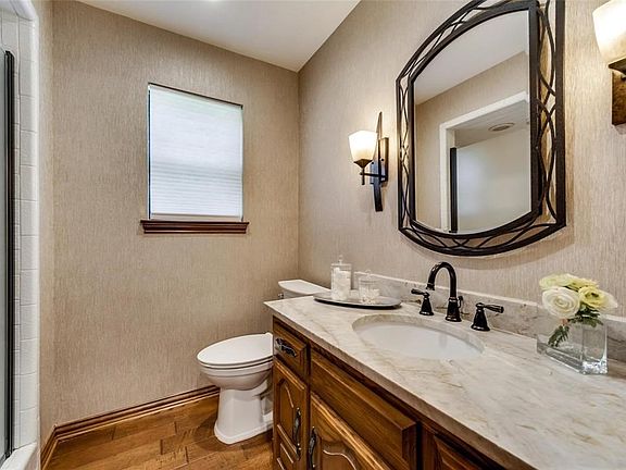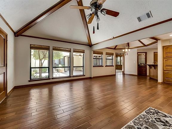 Sprawling West Plano hard-to-find 1-Story in Country Place with HOA that offers Pool & Tennis, Chisolm Trail & Big Lake Park. UPGRADES: Granite kitchen & laundry & baths; Double ovens (Upper is convection); stone back splash & under mount lights in kitchen; hardwood floors; recent nylon carpet w 8-lb pad; Stainless appliances; Plantation shutters in Dining; Updated Master BR bath w seamless glass; All baths updated; gutters have Leaf Guard; Re-wrapped duct work; Blown-in Insulation; Toilets; Panel box 2019; Roof 2016; Windows 2007. HUGE central interior courtyard for grilling & entertaining is 21x10. Large St. Augustine grassy back yard has fountain w board-on-board fence. Huge laundry room w folding table. 2021-09-23