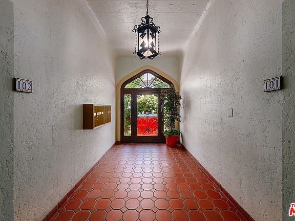 Incredible Vintage Spanish unit circa 1929 in historic Los Feliz. Enter through the secured private gates to a communal front patio with Spanish tile that is lushly landscaped with bougainvillea, jasmine and multiple other fragrant blooms. The door of the building, also secure, leads to all 8 town home style apartments. Completely renovated, this unit has a large living room with original light fixtures and skylights. The kitchen contains all amenities refrigerator, dishwasher, microwave and garbage disposal. Staircase with original wrought iron leads to two bedrooms and one bath upstairs. Multiple closets and storage cabinets make for a modern experience while the building exudes a European oasis. At the end of the hall is the second patio with communal BBQ, hammock and water feature. A beautiful experience in an incredible neighborhood walking distance to all that Los Feliz Village has to offer including shops, bistros, and Griffith Park. Annual - $3,600 Per Month