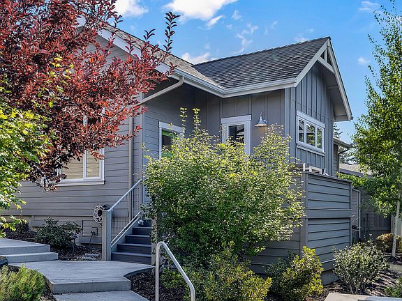 Welcome to Monterey Mews Condos! Enjoy single-family home ownership with carefree condo living! HOA covers all exterior structural maintenance, common areas, landscaping, water/sewer, snow removal, window cleaning. Detached, private single-car garage and storage space. Earth Advantage certified, modern cottage with direct access to water features and Adirondack chairs to relax and enjoy with friends! The interior is stylish and bright with vaulted ceilings. Kitchen features gorgeous Butcher-block island with seating, tile backsplash, Quartz countertops, and Stainless Steel appliances. Primary suite has large walk-in California closet, tiled shower, and water closet. The den is perfect for private office space or guests, and laundry room has folding table. Efficient mini-split heating and cooling, and Smart-home features that include automated blinds! All of this... in the perfect Westside Bend location close to all the fun and adventure that Bend has to offer!