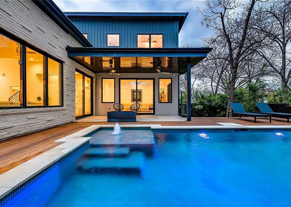 Stunning soft modern new build on one of the most prestigious streets in 78704. Quality construction, luxurious finishes, and a comfortable yet spacious design. This home is perfect for living and entertaining with 4 bedrooms, 4 full baths, 3 living areas, a first floor master suite with backyard access, an open concept living and dining, and a gourmet kitchen with all viking appliances, wine fridge, and butler's pantry. Central to the home is the incredible sleek pool and courtyards with mature and thoughtful landscaping that provide the perfect amount of shade and privacy.