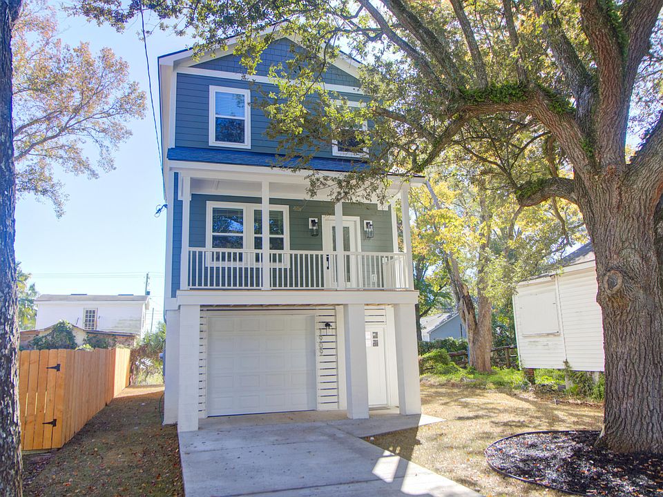 Welcome to 'The Tree House' a beautifully crafted new construction home designed for modern living.This spacious three-bedroom, three-bathroom home showcases high-end finishes throughout, including custom vanities, designer tile, quartz countertops, Samsung appliances, and shiplap-finished walls and flooring that exude warmth and sophistication.Each bedroom features an en suite bath and spacious closets, while soaring 9-foot-plus ceilings create a bright, airy flow between the open-concept kitchen and living areas. A generous front porch invites outdoor relaxation, and the raised foundation offers a full two-car garage with additional space for storage or outdoor living.The fenced backyard provides both privacy and space for entertaining.Nestled in an up-and-coming neighborhood with convenient access to downtown Charleston, Mount Pleasant, Park Circle and I-526, this home also sits near the highly anticipated Navy Yard redevelopment poised to become a thriving hub of retail, dining, and residential life. Come experience the perfect blend of thoughtful design and Charleston charm at 1909 Redwood Street and make it your home today.