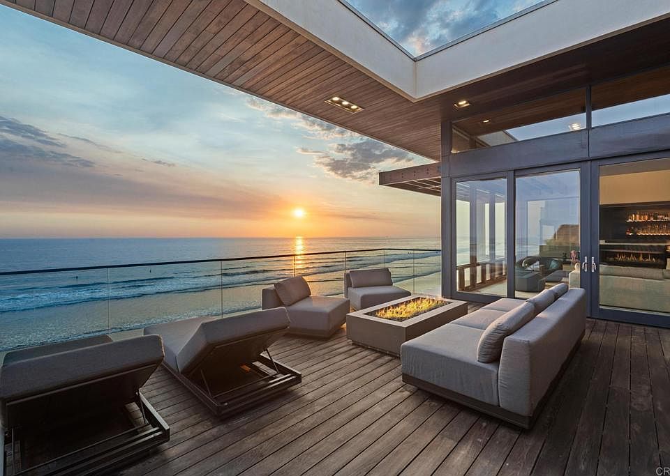 Showcasing 60’ of ocean frontage across two lots on the prestigious south end of Pacific Street. Escape to this coastal stretch to experience one of Southern California’s “Most Authentic Beach Towns,” as cited by The New York Times. Oceanside boasts the #1 Resort in the US and California, as ranked by Travel + Leisure, the longest wooden pier on the West Coast, a museum dedicated to surfing, and the famous “Top Gun” house. This exquisite modernist retreat combines extraordinary architecture and design with a warm and inviting layout. Refreshing ocean breezes, striking sunsets, and sounds of the surf are ceaseless. Concrete custom built construction with an emphasis on seamless indoor-outdoor living, this is the So-Cal beach dream that is so hard to find! Take in panoramic unobstructed ocean views as soon as you step inside. Views stretch from La Jolla to Dana Point, and on clear days views of Catalina and San Clemente islands. Watch surfers and wild life - pods of dolphins and pelicans skimming the waves The unique highlight of this property is the vast useable and exceptional outdoor space. Enjoy year round temperate weather in your choosing of the skylit entry courtyard, main level sundeck with full bar, the beach level California room complete with jacuzzi and cold plunge, and of course the private sandy beach! Ideal as an entertainer’s ultimate paradise or enjoy it as your own personal oasis & live like you’re on vacation every day! This property has undergone many recent luxurious upgrades and improvements including completely new state of the art kitchen, primary suite with custom walk-in closet, awe-inspiring spa like sauna room, owned solar, new garage doors, garage lift for additional parking, electric car charging, new central A/C, tinted floor to ceiling windows for additional privacy, among much more! This property is directly ocean front, there is no road or walking/bike path between! Easy access for swimming, surfing, or walking the coastline to the Oceanside Pier. Positioned between Carlsbad Village and Downtown Oceanside, you’ll never run out of things to do. Enjoy Michelin star restaurants, trendy coffee shops, weekly farmer’s markets, boutique shopping, and nightlife all within minutes! Don't miss your chance to own this unparalleled coastal retreat.