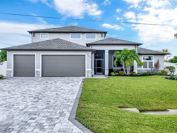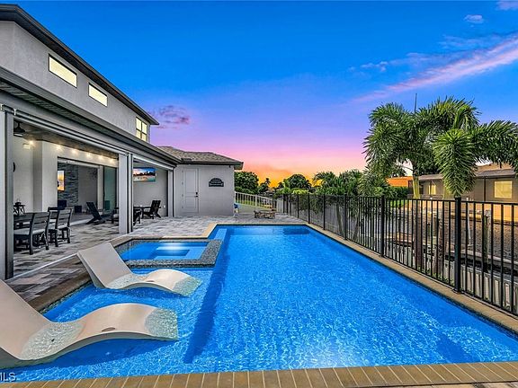 BACK ON THE MARKET DUE TO BUYER UNABLE TO GET FUNDS. Welcome to your exclusive retreat in the heart of Cape Coral, Florida! This breathtaking northern exposure residence boasts DIRECT SAILBOAT GULF ACCESS WITH NO BRIDGES; 1 mile journey to the open Gulf. Home is being sold turnkey; therefore, EVERYTHING IS INCLUDED in the sale of the home. All you have to do is move in with no added expenses. An exceptional custom-built, well cared for, one-owner home that has never been rented or used as vacation rental. Practically brand new. Never been flooded in any of the hurricanes. Nestled in one of Cape Coral's most sought-after neighborhoods that is close to everything. This custom-designed home offers a perfect blend of luxurious living and effortless entertaining. 2 story home with a second story loft full of entertainment. The loft has a lush bar with refrigerator plus wine frig., pool table (that converts into a dining room table with benches), shuffleboard, darts, arcade video game, and foosball table (that also converts to ping pong/chess/pool). The home has many upgrades including quartz countertops in the kitchen, stainless steel appliances, barn doors that are soft close, plantation shutters on windows, remote controlled blinds on sliders, custom closets, soft close cabinets and drawers, custom woodwork on the walls, Lutron electric system that can set light schedules, set light intensity, and be controlled by an app, CAT-6 cable wired for fast reliable internet, and dual AC units. 3 car garage with painted floor, upgraded garage cabinets/shelves, and electric outlet for electric car charging. The backyard has artificial grass/turf, heated saltwater system pool, spa, and sun shelf (that can be controlled with an app), outdoor kitchen, fire pit, outdoor shower, extensive landscape with landscape lighting, dock and remote-controlled boat lift, dock lighting, 2 kayaks, and security system with 5 cameras, doorbell camera, and alarm system. The house has hurricane impact windows and hurricane impact sliding glass doors, however, it also has roll down hurricane shutters on back patio so all outdoor furniture can be brought under patio and roll down can keep it extra safe and secure. Every detail of this home was carefully planned and executed with quality in mind; no shortcuts and no compromises. Whether you're in search of a permanent residence, a vacation getaway, or a lucrative rental opportunity/Airbnb, this home exceeds all expectations. Immerse yourself in the unparalleled luxury and tranquility of Cape Coral living with this extraordinary waterfront property. Call for a showing so you can start living the dream in this stunning custom built beautiful modern home!