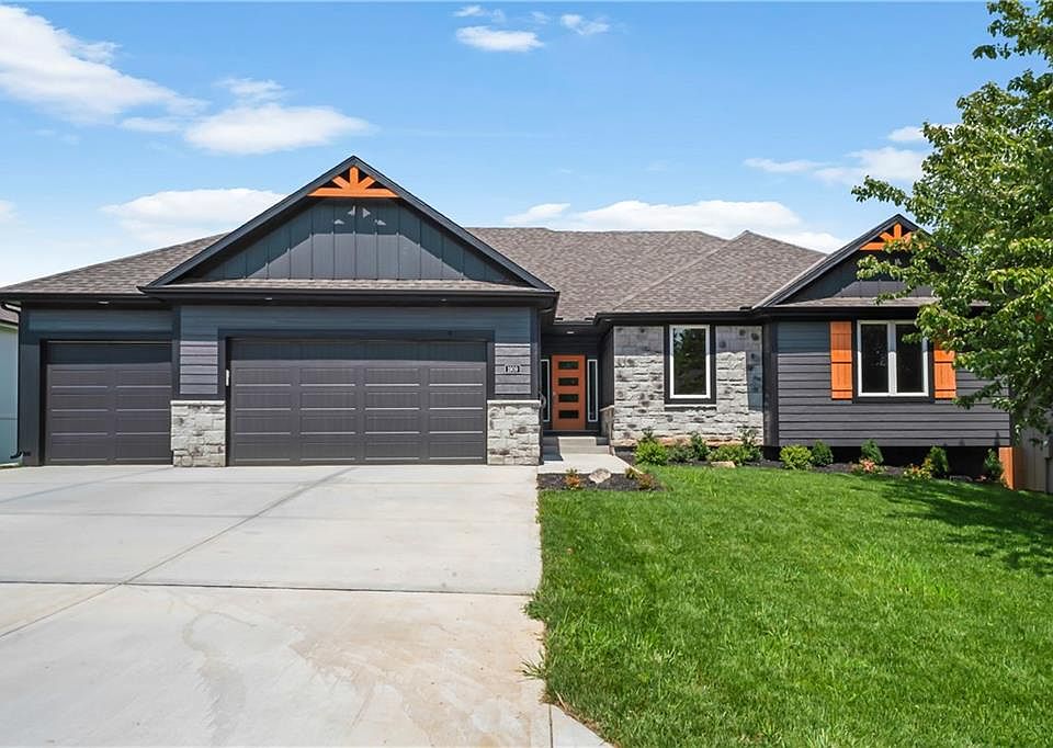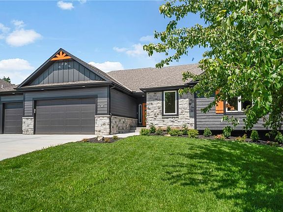 RATE FIND! NEW STRAIGHT RANCH IN A WELL ESTABLISHED COMMUNITY! THIS ONE HAS IT ALL; 3 CAR GARAGE, LARGE BEDROOMS (ALL WITH WALK-IN CLOSETS), JACK AND JILL BATHROOM, 2 SIDED FIREPLACE TO OVERHEAD DECK WITH A VIEW OF WOODED PARK LAND, WALKOUT BASEMENT, LARGE WALKIN PANTRY, OPEN FLOOR PLAN, NEAR LAKE JACOMO, KITCHEN ISLAND, 2X6 CONSTRUCTION,UPGRADED ROOF, PELLA WINDOWS, SPRINKLER SYSTEM.TAXES ARE ESTIMATED. BUYER'S AGENT TO CONFIRM ROOM SIZES, HOA AND TAXES.