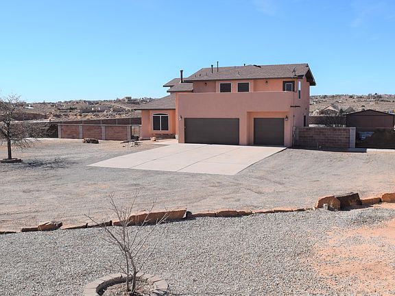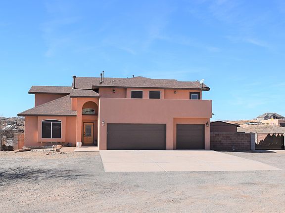 This home is so Amazing and with Elegant upgrades in all the right places. Walk into this grand entry with high ceilings and a gleaminng winding staircase. The formal living area has high ceilings with a ceiling fan and a wood stove that simply dresses up the room. The formal dining large and fits the dining table nicely. The kitchen is BIG with so many upgrades and touches is just sparkles. Granite countertops, A large island, stainless appliances, undercabinet lighting, stone back splashes and top of the line fixtures. 4 big bedrooms with the Master that is Roomy and Amazing. Out the master door a view of the Sandia mountains. The Master bath is a room you walk into and don't want to leave. The 1 acre lot is perfectly laid out for everything you would ever need. Come and see !!