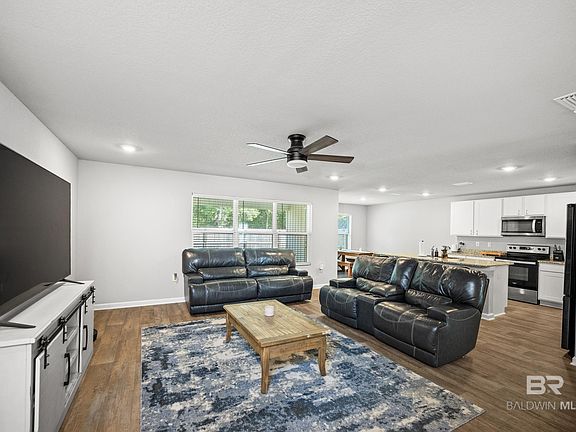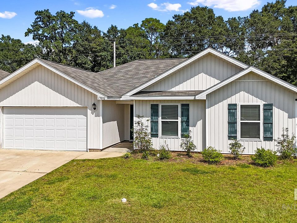This GOLD Fortified 3-bedroom, 2-bath home built in 2022 offers modern comfort with smart home features. The open 1,734 sq ft floor plan includes a bright kitchen with granite countertops, stainless appliances, and plenty of storage. The primary suite boasts a double vanity, garden tub, walk-in shower, and spacious closet. Outside, enjoy a fully fenced backyard perfect for entertaining, relaxing, or gardening. Conveniently located in Robertsdale with quick access to I-10 and the beach. Buyer to verify all information during due diligence.
