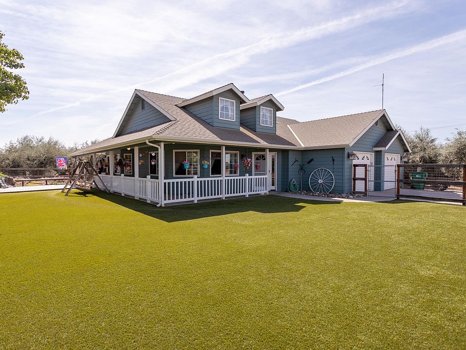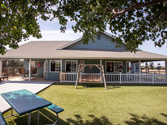 9.80 of land with approximately 3.5 acres of olive, with a production record history for buyer. 1890 sq. ft home, Large open floor plan, tongue and groove ceilings, 3 bedroom, office could possibly be 4th bedroom., Large shower, double sinks and Jacuzzi tub in master bathroom.. Master bedroom has a large walk in closet, exit to the back covered wrap around porch, and a large water fall, that sounds like you are right next to the river. Kitchen is beautiful with Quartz counter tops black stainless steel appliances, including refrigerator.. . 20 x 30 covered RV parking, with a dump station. OWNED solar, 28 panels. A separate living quarter on the corner of the property has an older manufactured home with separate meter. The water source is a shared well and Lind more irrigation water.. This home is impeccably well maintained, call for appointment today!