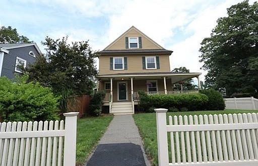 Price adjustment! Beautiful renovated Colonial with wrap around porch. Large rooms with architectural detailing. Open floor plan with fireplaced living room, spacious dining room and a nice kitchen with stainless steel appliances. Large newer windows for maximum light. Family size bedrooms, plus third floor bonus room could be office or 5th bedroom. Other amenities include 2nd floor laundry, Central A/C, newer roof, upgraded electric service and fenced in yard. Walking distance to Auburndale centre for shopping, X-Bus, Commuter Rail and Green Line T is close by as well. This is a fantastic home and a must see!