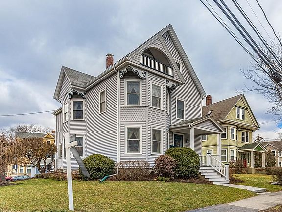 Beautifully maintained 5 bedroom (plus bonus room) Victorian with many period details. From the moment you step into the gracious foyer with oak accented staircase you feel the charm of the period. Yet this home comes with the updates that reflect today's lifestyle. Adding to the unique character of this home are four bay windows (one with a window seat) and a third floor Juliet balcony! Almost 2000 square feet of living space set on a manicured, landscaped, corner lot bounded by a quiet side street as well as a detached one car garage and spacious yard. Hardwood floors throughout. Five large bedrooms as well as the second floor bonus room provide this home with a spacious flow. Three season porch provides a great place to get away and relax. New, low maintenance, front porch with trex decking welcomes guests to your home. Super convenient to Mass Pike, Rte. 95/128, transportation, etc. This home is not to be missed! Open House 3/17, 3/18 12:00 Noon - 2:00!!