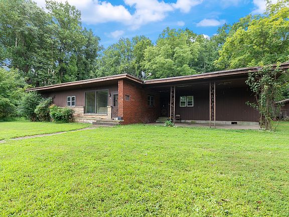 Private retreat high on a hill, but right in the middle of downtown Erin! Surrounded by beautiful mature trees, the location where the house and two car garge is located has a nice, mostly flat yard. House has a mid-century vibe and needs a complete remodel to bring it back to it's glory days. Enter the house at your own risk. Some floors are very soft and have been marked with plastic storage container lids. House was heated and cooled with a central heat/air unit, but the unit no longer functions. House being sold "As-Is". Some personal items still to be removed from house and property. Do not enter the property without a scheduled appointment.