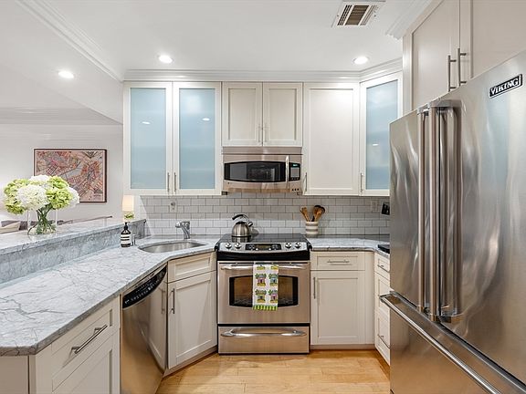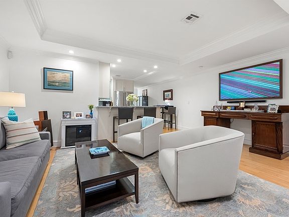 Floor-through garden level 2 bed/2 full bath with private patio in ideal Back Bay location on the second block of Beacon Street. Spacious living/dining room has 8’7” tray ceiling with inlaid crown moldings and is well laid out for segmented living and dining. Designer kitchen has super white granite counter tops, over-sized breakfast bar, subway tiled back splash, and Italian cabinetry, as well as GE Profile stainless appliances and new (2021) Viking refrigerator. Primary bedroom has three closets and en-suite bath with whirlpool tub. Large second bedroom has two closets and direct access bath. Maple hardwood floors throughout. Two direct entries including rear door to a furnished private brick patio. Unit has ample closets and storage space, new (2024) central HVAC and in unit new (2019) stackable full sized Speed Queen washer and dryer.