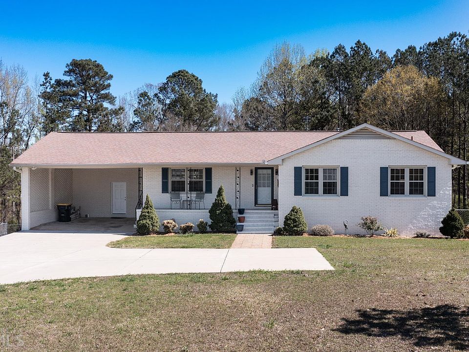 THE PERFECT ONE! 4 Sided Brick RANCH, on a FULL walk out BASEMENT, and sits perfectly on a slight rise in the middle of 3 ACRES!!! A lovely home with ample road frontage, breathtaking western sunset views, AND sellers are perfectionists! NEW HVAC- 2021, NEW Refrigerator 2021, 12x37 screened back deck, NEW METAL DECK ROOF 2023, LVP in the large kitchen and ORIGINAL REFINISHED HARDWOOD FLOORS, QUARTZ Countertops 2021, Marble Subway tile 2021, GAS WATER HEATER 2021, NEW EXTERIOR PAINTING 2023, NEW shower doors and tile 2021, whole home INJECTED INSULATION in the walls and NEW fiberglass blown in the attic (already cut energy costs by 50%) added fall 2022. FULL Daylight BASEMENT with interior and exterior access is currently the coolest workshop around. Easily finish with a stub in place for an additional bathroom. Sellers even added a washer cut off and drain to avoid frozen pipes. 'Move in ready' is an understatement on this one. FENCE FENCE FENCED for the kids of all kinds. LOCATION is 5 minutes to I 85- Coweta Schools- Easy access to everywhere from Hartsfield Jackson International to Amazon or little further south to Kia. Hop on the interstate and be anywhere in minutes while enjoying the absolute quietness of the countryside.