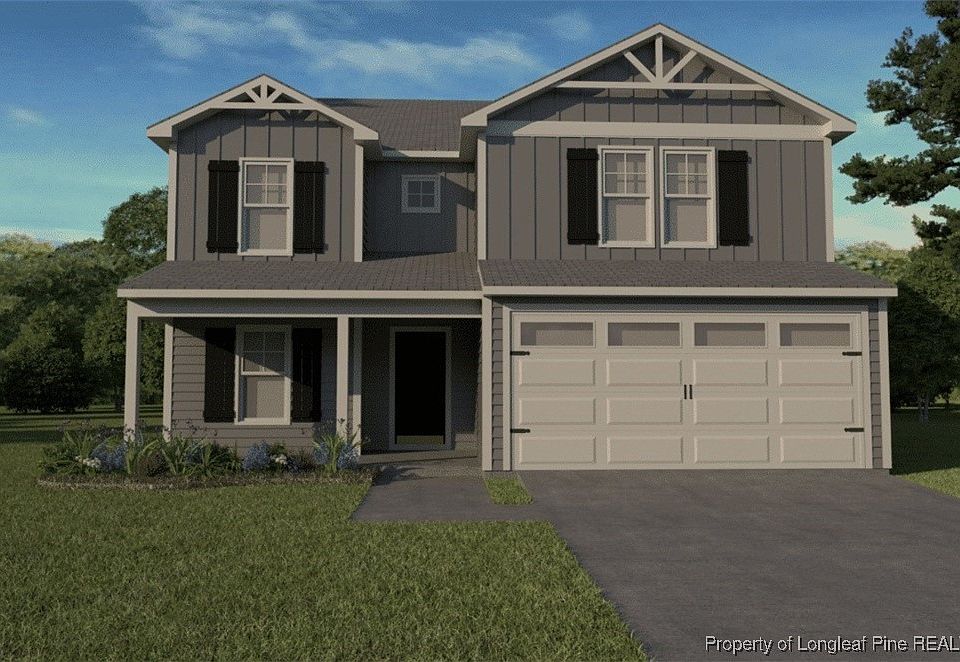 The Reagan Floor Plan by Ben Stout Construction combines thoughtful design, spacious living, and high-end finishes in the desirable Turnberry West community. This impressive two-story home features 4 bedrooms, 2.5 baths, a dedicated study, and a versatile flex room, offering endless possibilities for work, play, and relaxation. The first floor welcomes you with 9-foot smooth ceilings, luxury vinyl plank flooring, and a bright, open-concept living area. The modern kitchen features granite countertops, shaker-style cabinetry, a ceramic tile backsplash, and stainless steel appliances. A large island overlooks the family and dining rooms, creating the perfect setting for entertaining. A private study, mudroom, and optional drop zone add functionality and convenience. Upstairs, retreat to the primary suite with an 18’x15’ bedroom, dual-sink quartz vanity, framed shower, and walk-in closet. Three additional bedrooms, a full bath, and a spacious rec room provide plenty of room for everyone. Turnberry West Subdivision is right across the street from the new James A Leach Aquatic & Recreation Center with pools, sports courts, community space, children's playground, and more. Nearby, enjoy shops, dining, and golf. Only minutes to Hoke Hospital and Moore Regional Hospital. Turnberry West offers easy access to Southern Pines, Fayetteville, and Fort Bragg. Call the listing agent today to schedule a tour and secure your spot in Turnberry West! Estimated completion early January 2026. Welcome home!