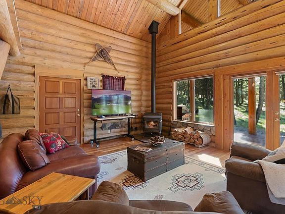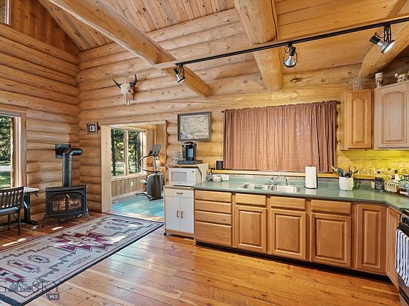 Quality crafted Mountainview Log Home - 1410 sq ft, 2 BR, 2 BA log cabin situated amongst the trees on nearly 3 usable acres of land. The cabin is finished with western fir and larch wood flooring, an open floorplan with spacious vaulted pine ceilings. The covered patio overlooking the property is perfect for barbeques with guests and family. Cozy heat is provided by a free-standing propane stove and a wood stove. A new 10 x 16 shed is great for storing your recreational toys. The entry is a combination sun room and entry for coats and footwear. The cabin is offered mostly turnkey including several log and pine furniture pieces, new gun safe and is ready to occupy. The property is located just off of the paved road only a few minutes from the mountain community of Seeley Lake. Lake access, trails, wildlife watching and two wilderness areas are waiting for you.