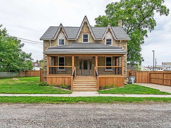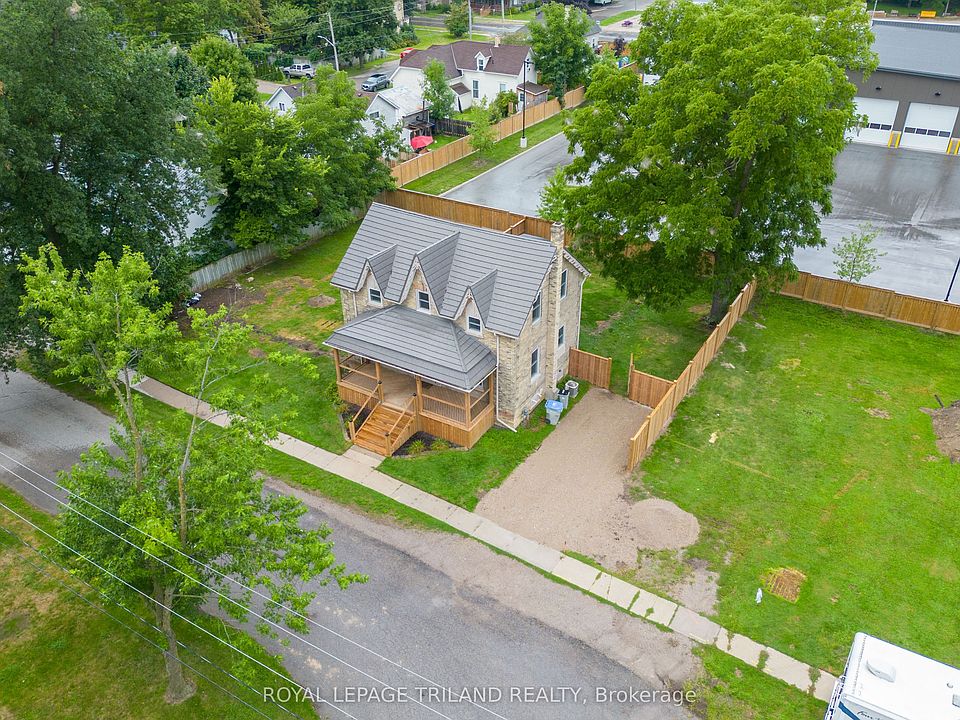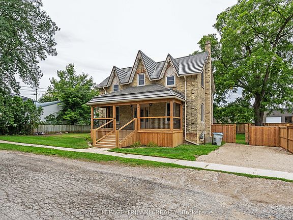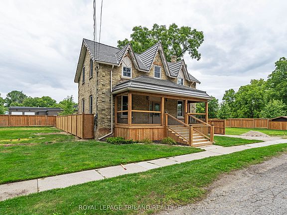 Welcome to this beautifully updated 2-story yellow brick home, brimming with curb appeal thanks to its inviting covered front porch and gardens. Ideally situated in the growing community of Parkhill, this home offers the perfect blend of quiet small-town living with convenience-25 minutes to the beach, 30 minutes to London, and 50 minutes to Sarnia-Port Huron border. Parkhill itself is thriving with recent infrastructure updates, including repaved main streets, sidewalks, and improved public service buildings like an ambulance station, fire hall, and library. You'll also enjoy access to elementary schools, a high school, parks, an arena, gym, tennis courts, restaurants, Tim Hortons, Home Hardware, and more. Outdoor enthusiasts will love the local dam and conservation area ideal for boating and nature walks. Inside, you're greeted by a bright open-concept kitchen with a large island, sink overlooking the yard, walk-in pantry, tile backsplash, and quality appliances. The dining area is filled with natural light, and the main floor also offers a cozy living room and a versatile flex space great for an office, playroom, or home gym. A modern 3-piece bath with tiled shower and laundry area (washer/dryer included) add convenience to the main floor. At the rear, a mudroom leads to a partial basement for storage and also out to a fenced backyard with a patio and garden shed - ideal for entertaining and pets. Upstairs, you'll find three bedrooms, hall closet and a 4-piece bathroom featuring a tub and separate shower. Improvements to the house include metal roof, furnace/AC, owned water heater, kitchen appliances, and upgraded electrical service. This move-in-ready home blends historic charm with modern updates offered at an affordable price. Don't miss your chance to own a piece of Parkhill!