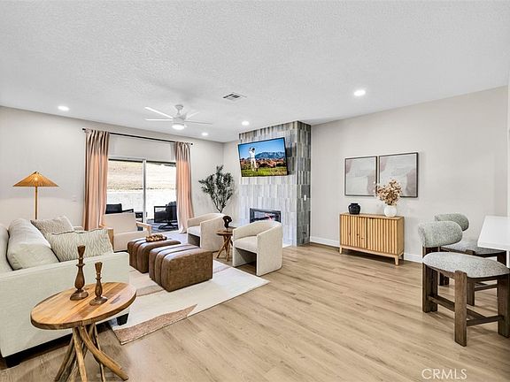 Welcome to this beautifully remodeled, FULLY FURNISHED TURNKEY home featuring 2 spacious bedrooms, 2.5 bathrooms, and a versatile bonus office—perfect for working from home or hosting guests. Step inside to an open and airy living space with wide-plank flooring, a stunning floor-to-ceiling tiled fireplace, and oversized sliding doors that flood the room with natural light and open to a private patio.
