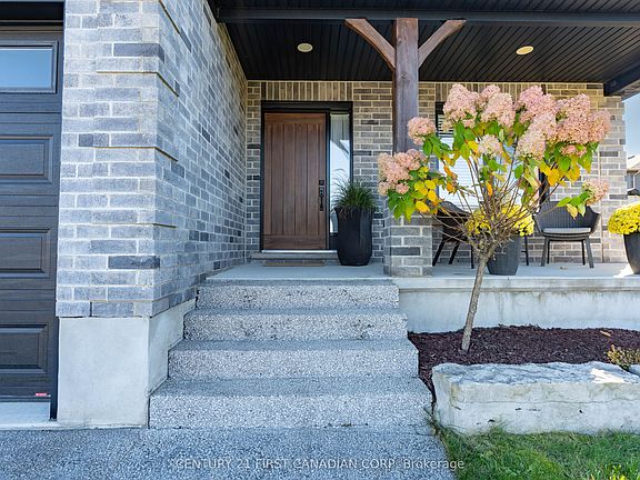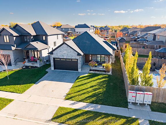 Welcome home to 191 Gilmour Drive, located in the Ridge Crossing subdivision - a welcoming community home to families and retirees alike. Residents here enjoy the scenic walking trail around the pond, brand new soccer fields, and the friendly small-town atmosphere that Lucan is known for.This beautifully maintained bungalow offers over 1,540 sq. ft. of finished main-floor living space with two bedrooms and two full baths, plus nearly 1,000 sq. ft. of additional finished space in the lower level. The bright, open-concept main floor has been freshly painted and features immaculate hand-scraped bamboo flooring throughout. The living room includes a gas fireplace and views of the backyard, while the spacious primary suite features a four-piece ensuite with a makeup vanity and walk-in closet.Downstairs, the finished lower level offers a generous family room - perfect for movie nights or watching the game with friends - along with two large bedrooms and another full bath.The 49' x 137' lot provides the perfect blend of space and privacy. Enjoy summer days by the above-ground pool, relax on the stamped-concrete patio, and entertain family and friends in this beautifully landscaped backyard.Additional upgrades include a 220 V outlet in the garage, a 5" exposed-aggregate concrete driveway, stamped-concrete walkway to the backyard, water-pressure-powered sump-pump backup, owned water heater, SONOpan soundproofing with resilient channel and acoustic caulking in the basement walls and ceiling, 190' of perforated drainage tile around the back and sides of the home, and spray-foamed rim joists.Every detail has been thoughtfully designed for comfort, quality, and peace of mind - all within walking distance to Lucan's parks, trails, and community amenities.