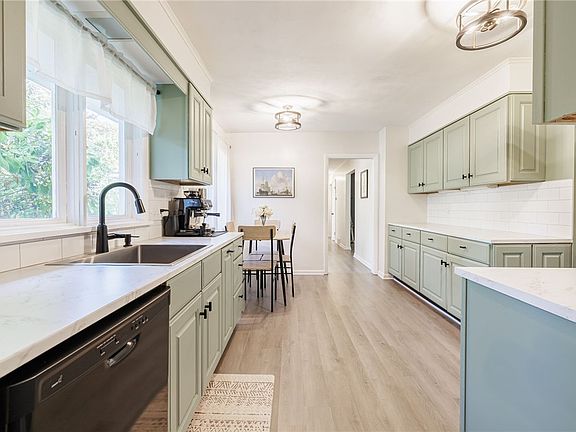Welcome to 191 Henderson Drive! Come see this updated Ranch home located in the Penfield school district. 3 bedroom and 1.5 bath. Roof was replaced in 2024 and comes with a 20 year transferrable warranty. Newer luxury vinyl plank flooring, paint, lighting and appliances along with an updated kitchen & bathrooms really makes this home stand out. Relax in the spacious living room with wood burning fireplace. There is additional living/entertainment space in the heated 3 season sunroom (approx. 157 sq ft) and partially finished basement (approx. 300 sq ft) that includes another fireplace & glass block windows. Enjoy your secluded backyard with in ground pool & patio. Additionally the home has a newer H20 tank (2022) and NEST thermostat. Wood burning fireplace has been cleaned and inspected yearly. Pool was closed by Pettis and safety cover was purchased in 2023. Delayed showings until Wednesday - October 8th @ 5:30pm / Delayed negotiations begin on Tuesday - October 14th @ 11am.