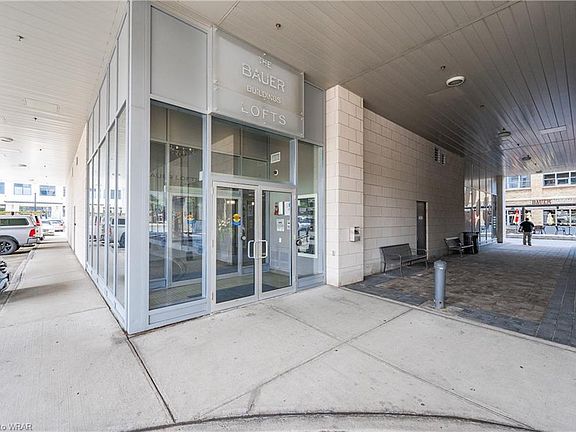 Exquisite one-bedroom Bauer Loft condominium located in the bustling heart of Waterloo Uptown. This well-maintained unit faces southeast, providing abundant sunlight and stunning views. Featuring 12-foot high ceilings, an open concept living, kitchen, and dining area that leads to a spacious balcony, a convenient 2-piece powder room adjacent to the in-suite laundry. The primary bedroom boasts large windows, brand new carpet, double closets, and a 4-piece ensuite bathroom with ample storage. This unit includes an underground parking spot and a locker. Building amenities include an exercise room, party room, and outdoor patio for residents to enjoy.