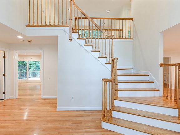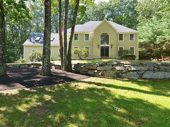 Stunning hip-roof Colonial in elegant neighborhood on a 1.34-acre wooded lot with contemporary features & architectural design. Expansive, welcoming marble foyer opens to formal living & dining rooms and to French doors to the library. A 2nd floor balcony offers a dramatic view overlooking the 2-story sunlit eat-in kitchen with soaring ceilings, a wall of windows, oversized center island and SS appliances. It then opens to a fireplaced family room with sliders to a generous, renewed deck. The master suite is complete with a fireplace, skylight and a marble bathroom with a shower and a whirlpool bath. Three spacious bedrooms and a full bath complete the 2nd floor. The lovely LL is finished with a full bath perfect for entertaining, a home theater or play. There are hardwood floors, recessed LED lights and updates throughout. Convenient to shopping, parks, golf and many area amenities, enjoy all the privacy of an estate experience you want. Near Wayside Inn & Sudbury.