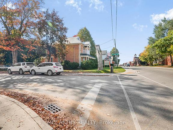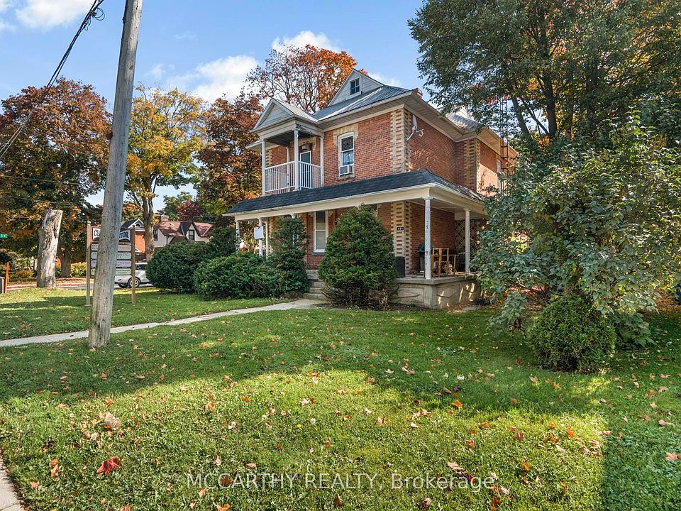 Victorian beauty with original Wood work. Large lot, centre of town, This charming 2.5-storey detached brick corner lot property, currently Living space with a clinic ideal for use as a bed and breakfast or a professional establishment, or a Single Family Home or work from home. A unique blend of vintage charm and modern comfort. The second floor features a cozy gas fireplace, ensuring warmth and ambiance during colder months, along with efficient baseboard heating in the front and rear areas. With the convenience of two sets of stairs to second floor, include a beautiful wood staircase leading to the second floor, accessibility is maximized. Stain glass windows add character and elegance to the space, while pocket doors create versatile room configurations. Additionally, the back entrance stairs to the second floor enhance privacy and accessibility, making this property a versatile and inviting option for various purposes. A detached 1 car garage + parking for 6. Large rooms & tall ceilings with original trim, covered porch, back entry to offices.