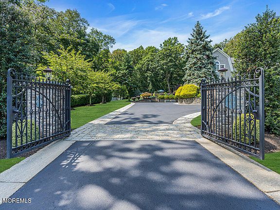Welcome to Navesink! This stunning 5-bedroom, 4.5-bath gated coastal colonial home, is nestled atop a private driveway and set on 2.7 acres of pristine land surrounded by lush, mature trees and a serene atmosphere. Step inside to discover spacious, thoughtfully designed interiors that combine classic charm with modern comforts. The family room features custom mahogany and maple woodwork, rich stain, and a stylish bar ideal for entertaining. The elegant, all-mahogany wood-paneled study adds a touch of sophistication and warmth. The 2,000 sq. ft. basement includes a finished area along with a dedicated gym space. Additionally, a convenient walk-up attic for extra storage as well as a full home generator.