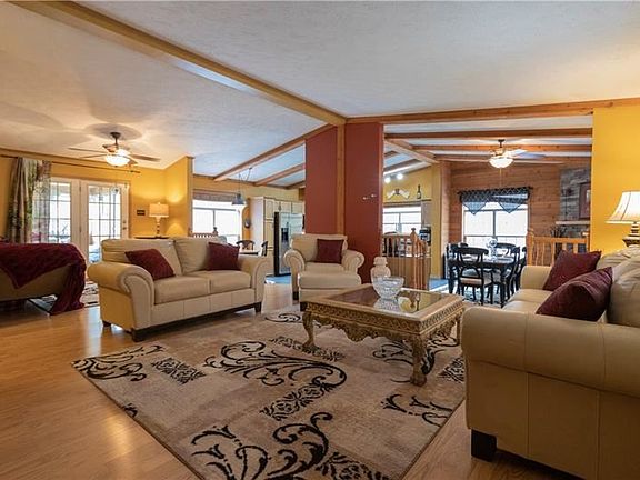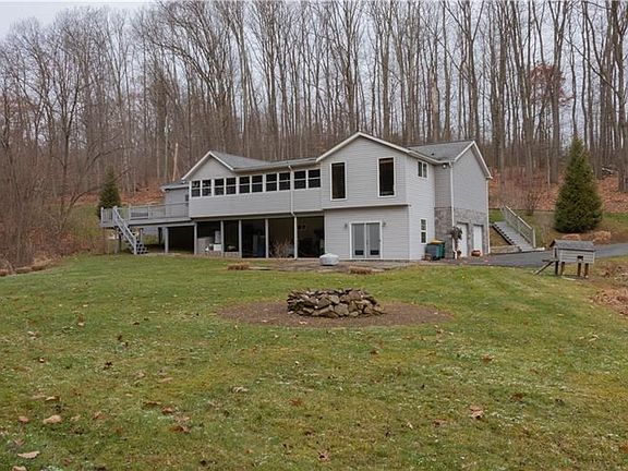 This one will check every box! Located in a rural setting on a "no outlet" street, situated on 3.35 private acres yet convenient to a major route, open spacious floor plan w/vaulted beamed ceilings, dream kitchen w large double tiered island, farmhouse sink, stainless steel appliances, corner built-in cabinet, stone back splash, cozy breakfast nook area, open dining room area w/a stone fireplace, large 1st floor great room, 4 bedrooms, master en suite w/two bathrooms connected w/a large walk-in closet & an additional area connected by french doors for an in house office,nursery... first floor laundry w/lots of cabinets & a pantry, unbelievable three seasons back sunroom w/wood ceiling & recessed lighting, amazing finished lower level that could be an apartment complete w/a bedroom or work out area, kitchen & a large bath w/walk in shower,additional finished room for a den or office,front covered porch(28X5)decks-side (20x17) back(24X14), flagstone patio(24X22),back covered patio(29X13)