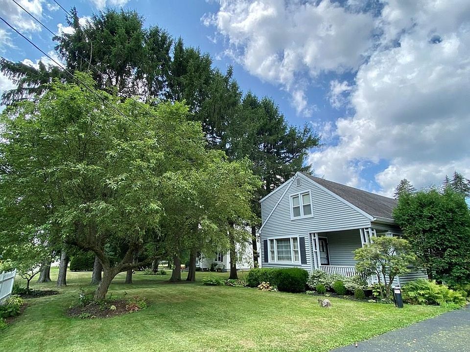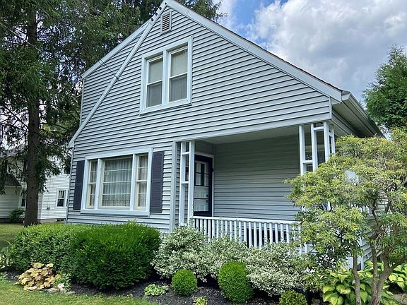 This side Cape cod is a must see as this is MUCH BIGGER than it looks from the main view. On top of the curb appeal this beautifully landscaped 3 bed 1 1/2 bath 1499 sq ft home has so much more to offer. It has a Large Living room(w/fireplace), large Dining room too, cute kitchen(with newer appliances), 3 very nice sized bedrooms (2 walk in closets), hardwood floors, spacious main floor full bath with a large tiled walk in shower w/a separate bathtub & plenty of storage too. Covered front porch & a covered patio to relax & enjoy your beautiful yard while sipping your coffee or an adult beverage! Updated electric & a detached 1 car garage. Fireplace is non functional (currently decorative).
