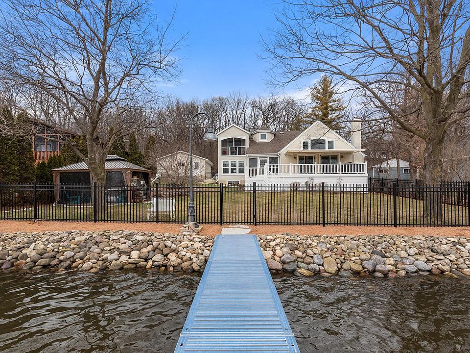 Great water views abound in this one of a kind, updated home on a manicured lot with 90' of Fox River/Tichigan frontage!. Main level offers a sunny open concept, custom KT w/island, great rm w/ gas fireplace, bdrm, bathrm, bonus room and laundry room. Unwind and enjoy sunsets in luxury in your covered hot tub. Patio doors lead to your spacious composite deck w/retractable awning. Lower level features large family rm w/walk out, gas fireplace, and full bathrm. Upper level boasts a lovely bdrm suite w/vaulted ceiling and private balcony plus additional bath and bdrm. Entertain in your screened in gazebo or hop onto your boat and explore the beautiful 1100 acres of waterways offering excellent fishing, kayaking, or swimming at the ''secret'' sand bar. Extra 2 car bonus garage!