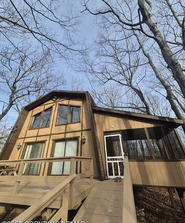 Serenity meets convenience in this beautifully updated Chalet-style home located in the amenity-rich Saw Creek community! This 3-bedroom, 2-bath gem offers three full levels of living space, including a fully finished basement featuring a cozy wood-burning stove, a kitchenette, and a bonus room already plumbed and ready for a third bathroom.
