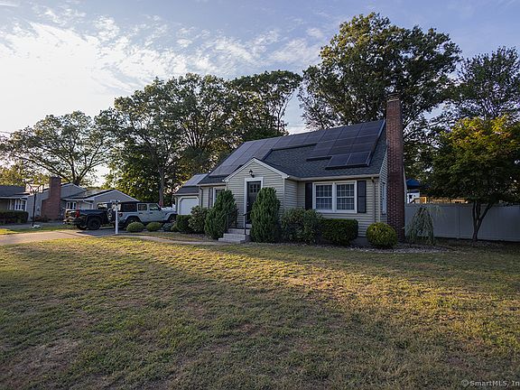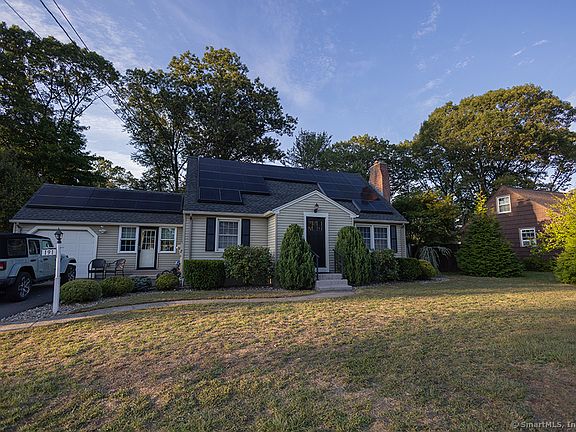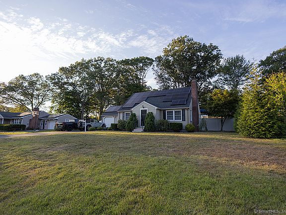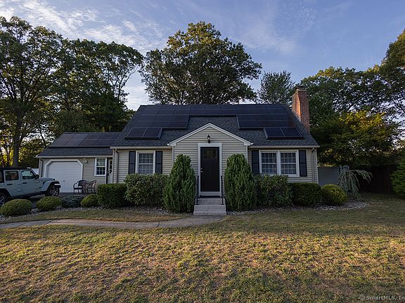 Welcome home to this beautiful 3 bedroom dormered Cape Cod. 1st floor features an awesome family room open to the kitchen with tile floor, cathedral ceiling, pellet stove, ceiling fan, sliders to patio & garage access, large kitchen with granite counters, stone backsplash, breakfast bar, ss appliances, tons of cabinets, & heated floors, dining room with hardwood floors, wainscot & crown moldings, large living room with fireplace & wood stove insert, hardwood flooring, open staircase, tons of natural light, 1st floor bedroom & remodeled 1/2 bath, The 2nd floor features 2 large bedrooms with hardwood flooring & full bath with granite counter. Partially finished basement (not heated) currently being used as a playroom, an office, a laundry room & storage space, new boiler in 2017, new large hot water heater 2025. Outside features one car garage, professional landscaping, new expanded driveway 2020, New front roof 2020, new large paver patio with firepit 2022, new white vinyl fence 2025, New front door, new pool 2022, storage shed, pool shed, wood shed & a raised garden bed. Sale contingent on sellers closing on their house, ASSUMABLE VA LOAN! !The house is super well maintained & many things are new, but this is an as is sale. There are Solar Panels, buyers will need be approved for loan, 28 yrs left out of 30 with 30 year warranty with Mosaic Solar, owner states bill is $187 a month & 8 out of 12 months there is no Eversource bill. ASSUMABLE VA LOAN FOR NON VETERANS ALSO