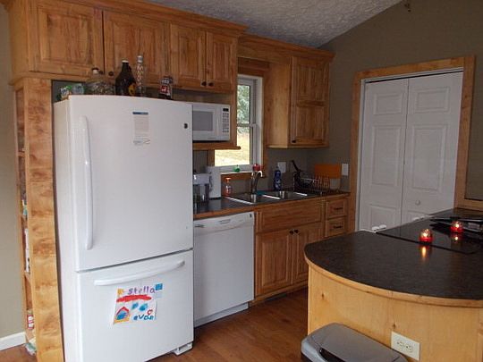 This home is listed as a 2-bedroom because of its septic permit, however, the office could easily be used as a 3rd sleeping room. The home is only six years old and was built with energy efficiency in mind. The living room, kitchen, and dining area have hardwood floors and vaulted ceilings, which make the home feel much larger. Both of the bathrooms have tiled floors. The master bathroom is especially spacious and the common bathroom has custom diamond-shaped tiles on the floor. All of the cabinetry throughout the home is hickory.