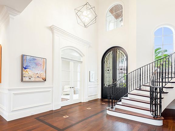 Set in the prestigious community of Royal Palm Yacht & Country Club, 191 W Key Palm Road is an impeccable Palm Beach style mansion set on an extraordinary 150ft of waterfront. Flawlessly updated in a transitional design style, the estate's details play beautifully against a sprawling two-story setting--more than 10,000 living square feet, including seven bedrooms. The exterior space, equally formidable given that it's nearly double the standard lot size, beckons to boaters with some 150 feet of deep-water dockage on the neighborhood's grand canal, just a stone's throw from Royal Palm's world-class marina. The reimagined interior honors its exquisite quality --think original, deep-grained wood flooring, lending a sophisticated contrast to the bright white living spaces on the main floor.