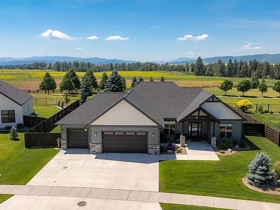 Experience elevated Montana living at Silverbrook Estates in the Madison plan. This luxurious 3 bedroom, 2-bathroom offers panoramic views and refined comfort throughout. Step inside to discover white oak engineered hardwood flooring, upgraded designer lighting, cellular shades through out, new high-quality carpet, and a seamless, open-concept layout perfect for entertaining. The gourmet kitchen flows into the spacious living area, where natural light pours in through expansive windows that frame breathtaking scenery. A private office space or could be used as a guest retreat. Each bathroom is thoughtfully appointed with upscale finishes, creating a spa-like retreat. The oversized garage includes two heaters. Step outside to enjoy a beautifully maintained garden, and newly stained fence. Whether you're soaking in the views or relaxing in timeless comfort, this property blends mountain elegance with modern luxury. Don't miss your chance to own a slice of Montana paradise. Freshly stained fence (beams and front door)