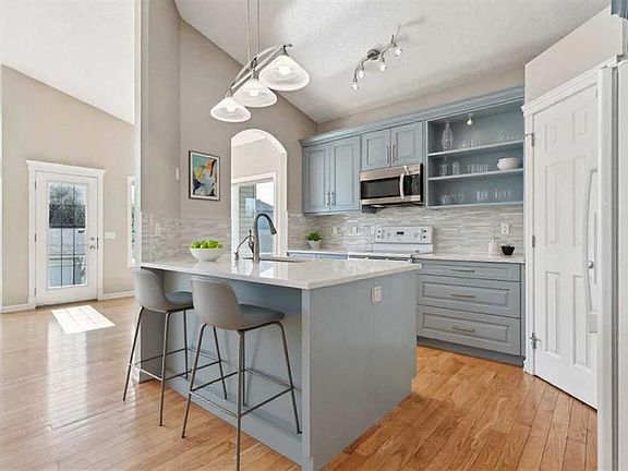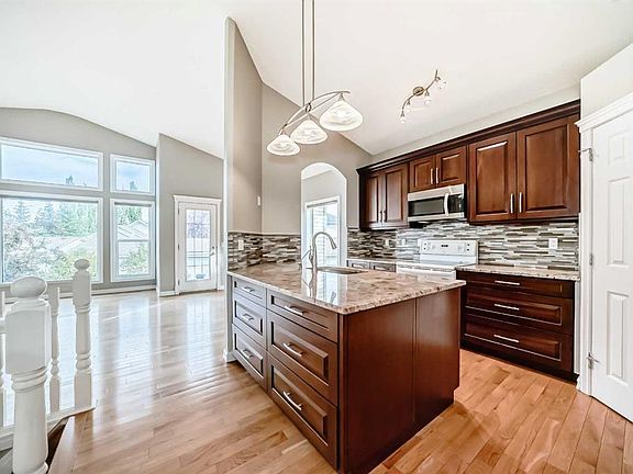 YOUR NEW HOME WHERE MEMORIES ARE MADE. Welcome to this beautifully maintained bungalow with 2,500 sq ft of living space, nestled in the vibrant and family-friendly community of West Springs, one of Calgary’s most sought-after neighborhoods known for its excellent schools, parks, and convenient amenities. Step inside to a bright, spacious tiled foyer that flows into an inviting open-concept main floor. Soaring vaulted ceilings, rich hardwood flooring, and large windows fill the space with natural light, creating a warm and welcoming atmosphere. The chef’s kitchen features elegant granite countertops—perfect for casual family meals or entertaining guests. The main floor boasts a generous primary bedroom complete with a walk-in closet, a spa-like ensuite featuring a standing shower and multi-jet soaker tub. An additional room on the main level offers flexibility as a cozy guest bedroom or home office, along with a convenient 2-piece powder room and main floor laundry. The fully finished basement adds even more living space with a large family room centered around a cozy wood-burning fireplace, two oversized bedrooms, and a full bathroom—ideal for teens, guests, or extended family. Step outside, enjoy the privacy of a low-maintenance vinyl fence surrounding a massive pie-shaped lot. The backyard is a true oasis with a multi-level deck, fruit trees, flowering perennials, and RV parking via the rear lane. It’s perfect for summer barbecues, kids’ playtime, or simply relaxing under the stars. Additional features include air conditioning, a water filtration system, garage shelving, and a no-pet, non-smoking history. This is more than a home—it’s a lifestyle. Book your private showing today!