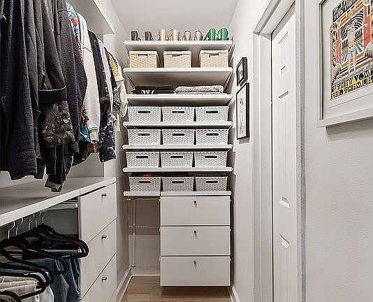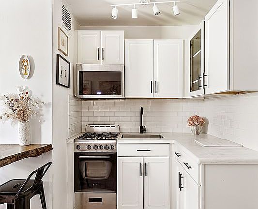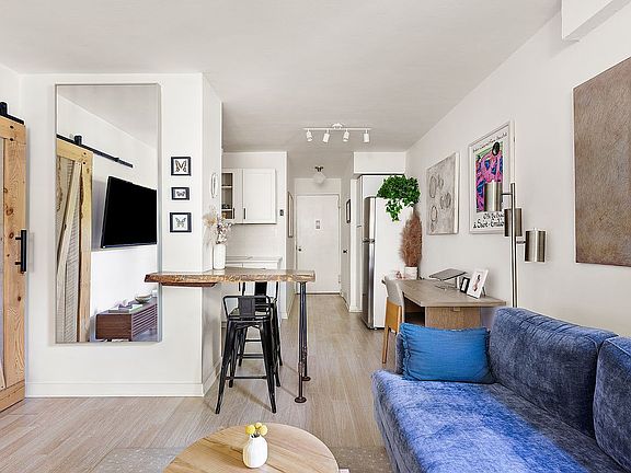 Welcome to Unit 4F, urban living at its finest in the quiet and peaceful part of Downtown Brooklyn just one block from Fort Greene Park! 4F is the perfect blend of comfort, style, and convenience. This move-in ready serene apartment offers a warm and modern feel with upgrades throughout. New West Elm lighting was installed in the kitchen and bathroom and dimmers were added in the kitchen and hallway. Food prep and meals are easily enjoyed at the live edge wood breakfast bar. With northern and eastern exposures, you get soft light throughout the day with green tree top views. This home offers separation between your lifestyle needs - an entry foyer with coat closet, space for a desk to work from home, sliding barn door into the walk-in closet, living room area, and sleeping area. The fully built out custom walk-in closet (…easily confused with a studio apartment in downtown Manhattan) is ready for your closet organization dreams. The bathroom was upgraded with a mirror and vanity that provide more storage.