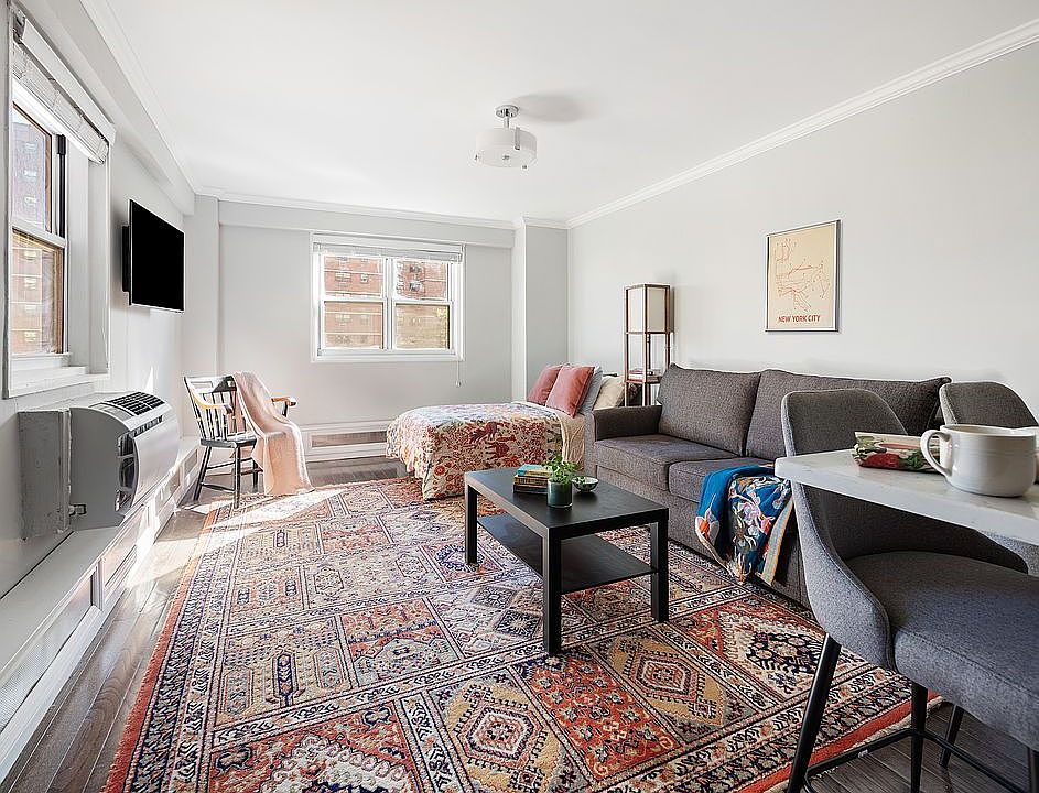 Sunny and inviting, this large renovated studio at Fort Greene’s University Towers offers double exposures to the north and east, filling the home with natural light throughout the day. Beautiful hardwood floors, abundant closet space, and a smart, flexible layout.