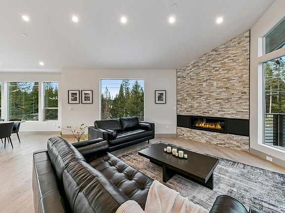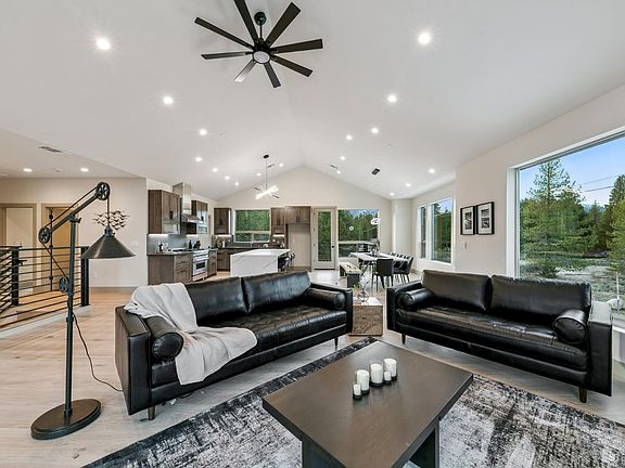 Discover your mountain retreat in this stunning brand-new custom home that perfectly balances luxury with Lake Tahoe's natural beauty. This impressive 3,100 square foot residence offers five bedrooms and four full bathrooms, all situated on a sunny flat lot that backs to Conservancy and Forest Service land.This mountain contemporary home features a spacious great room with vaulted ceilings and beautiful brushed white oak hardwood floors throughout. A luxurious gas fireplace creates the perfect gathering spot, while front and rear decks showcase the forest and mountain views.The gourmet kitchen features custom solid knotty alder cabinets paired with elegant quartz and granite slab counters. Stainless steel appliances include a commercial-style gas range and a beverage refrigerator, while a well-appointed pantry ensures ample storage.The main level primary bedroom is complete with a walk-in closet, private balcony, and spa-inspired bathroom featuring a dual-head shower, double sink vanity, and custom tilework. Downstairs, you'll find a second living area with built-in wet bar and custom gas fireplace, plus a junior primary suite with full ensuite bathroom.Quality craftsmanship shines throughout with custom built iron railings, on-demand water heater, and attention to detail. The location offers unparalleled outdoor recreation opportunities, with Tahoe Paradise Park just steps away, providing access to pickleball, hiking trails, swimming, fishing, and year-round mountain activities.